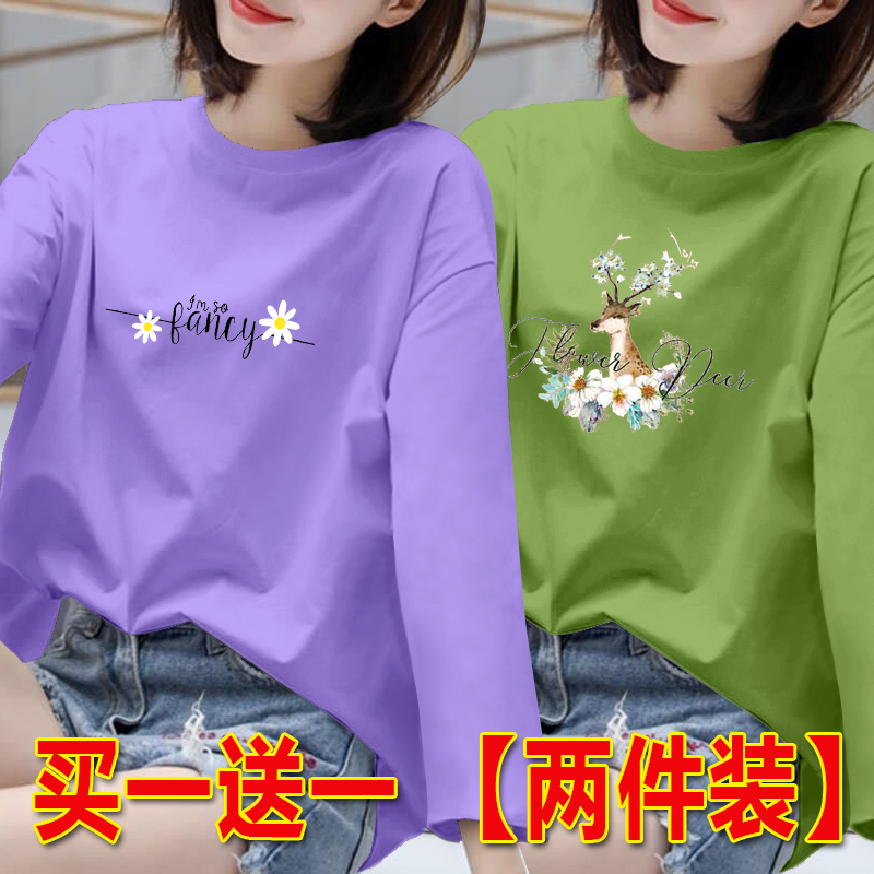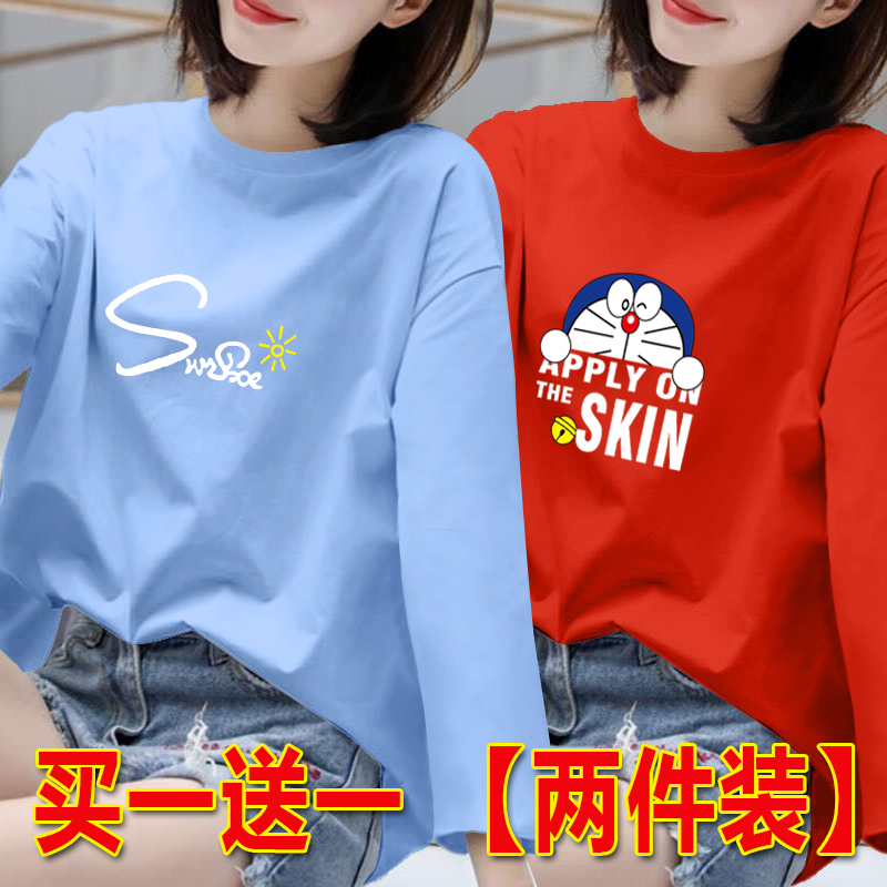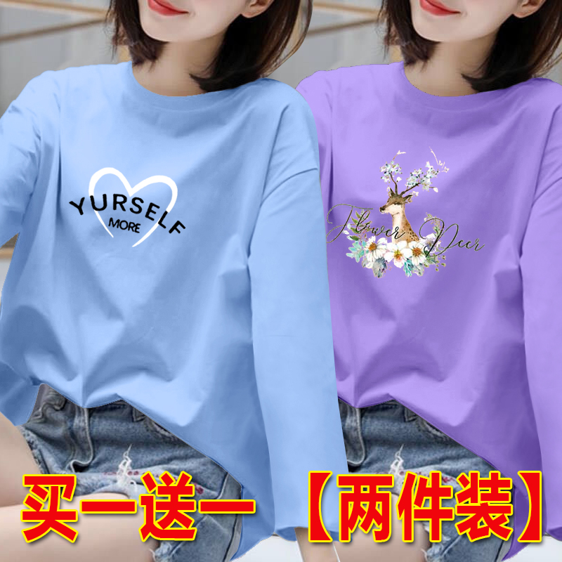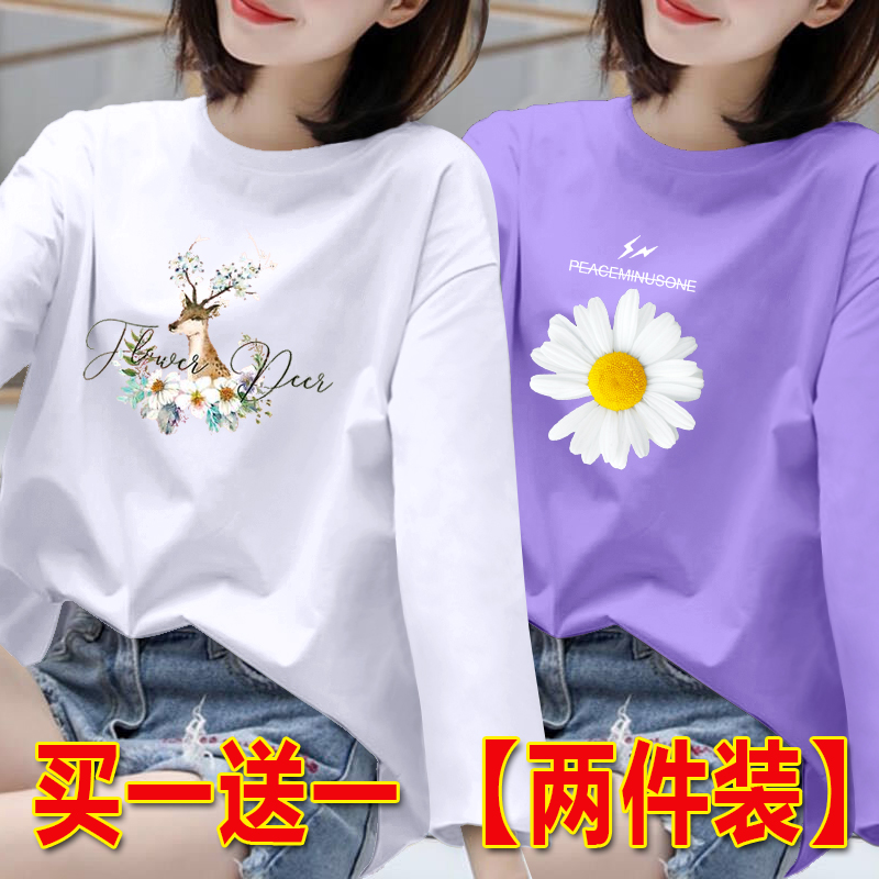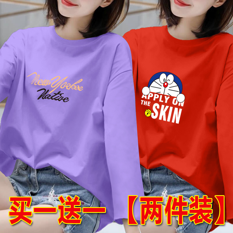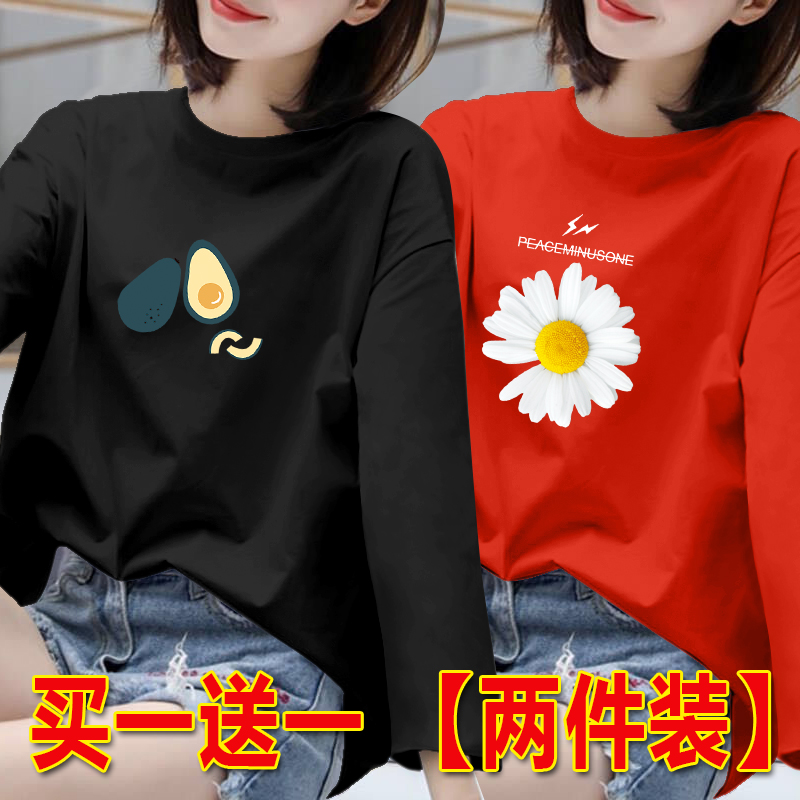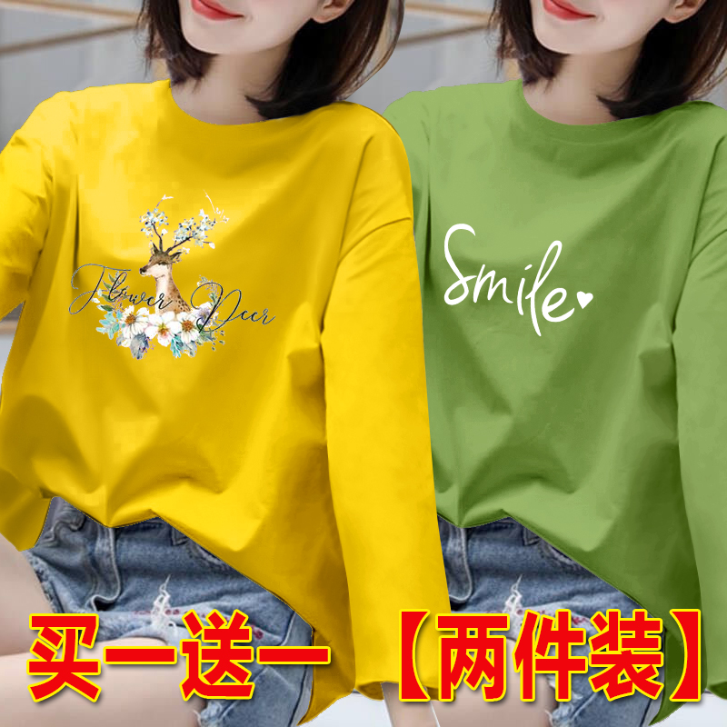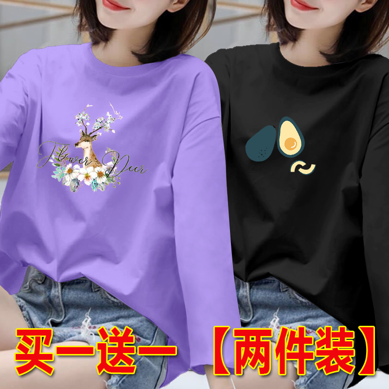 长袖t恤女胖MM打底衫女春秋新款百搭上衣韩版宽松大码圆领体恤潮