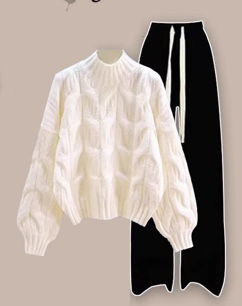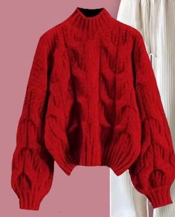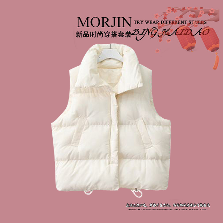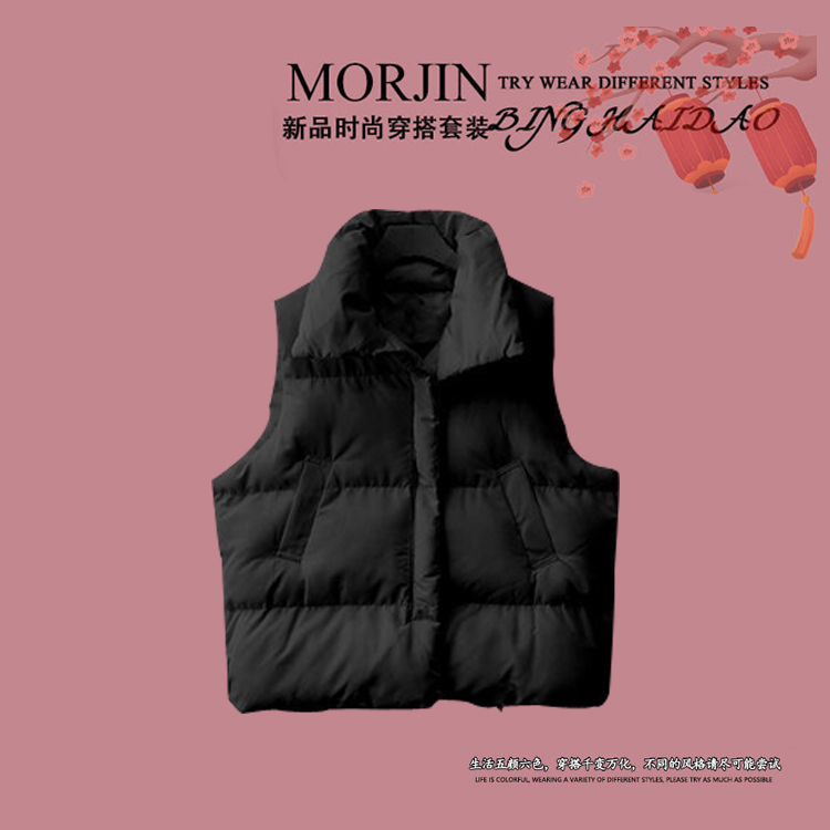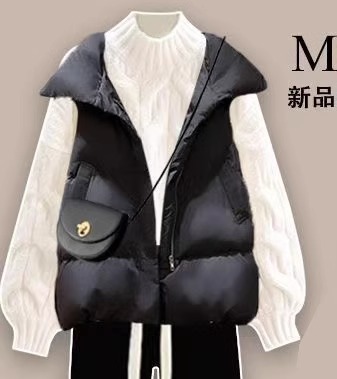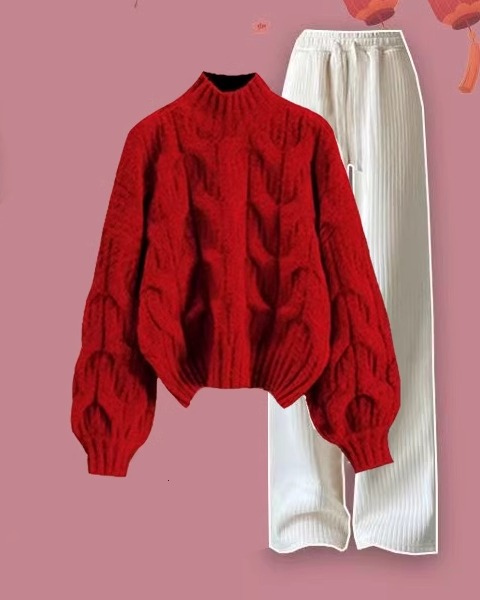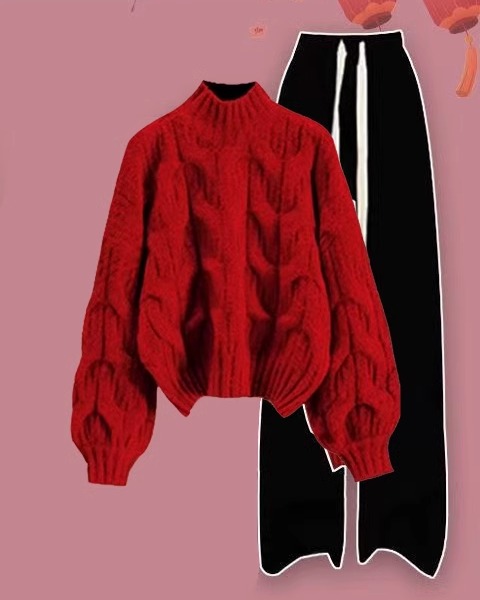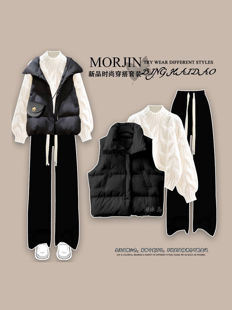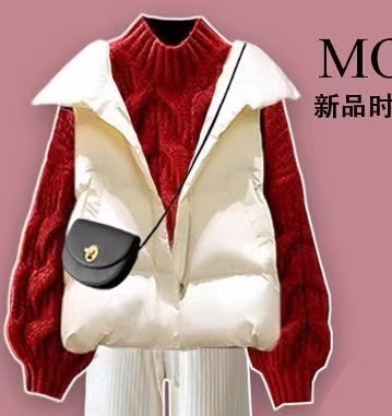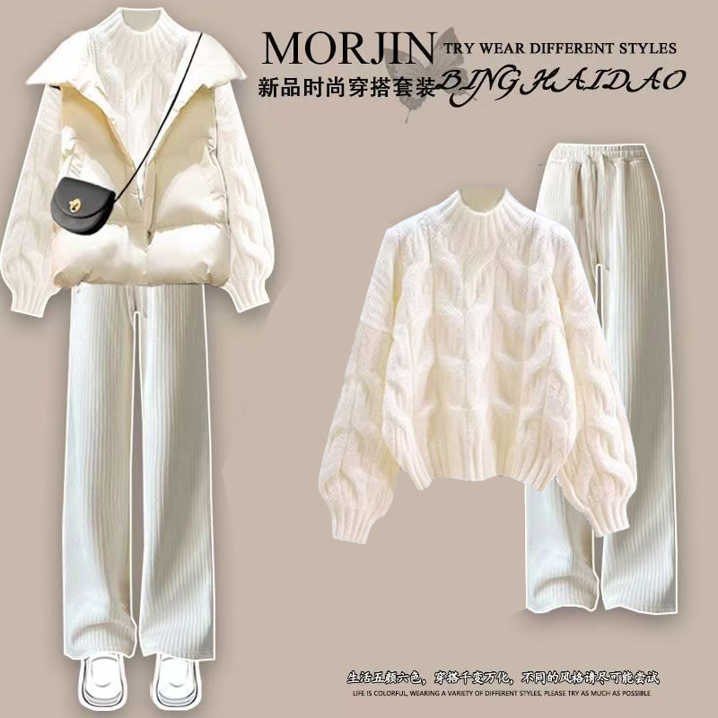 秋冬套装女温柔风穿搭棉服马甲搭配针织红色毛衣加绒休闲裤三件套