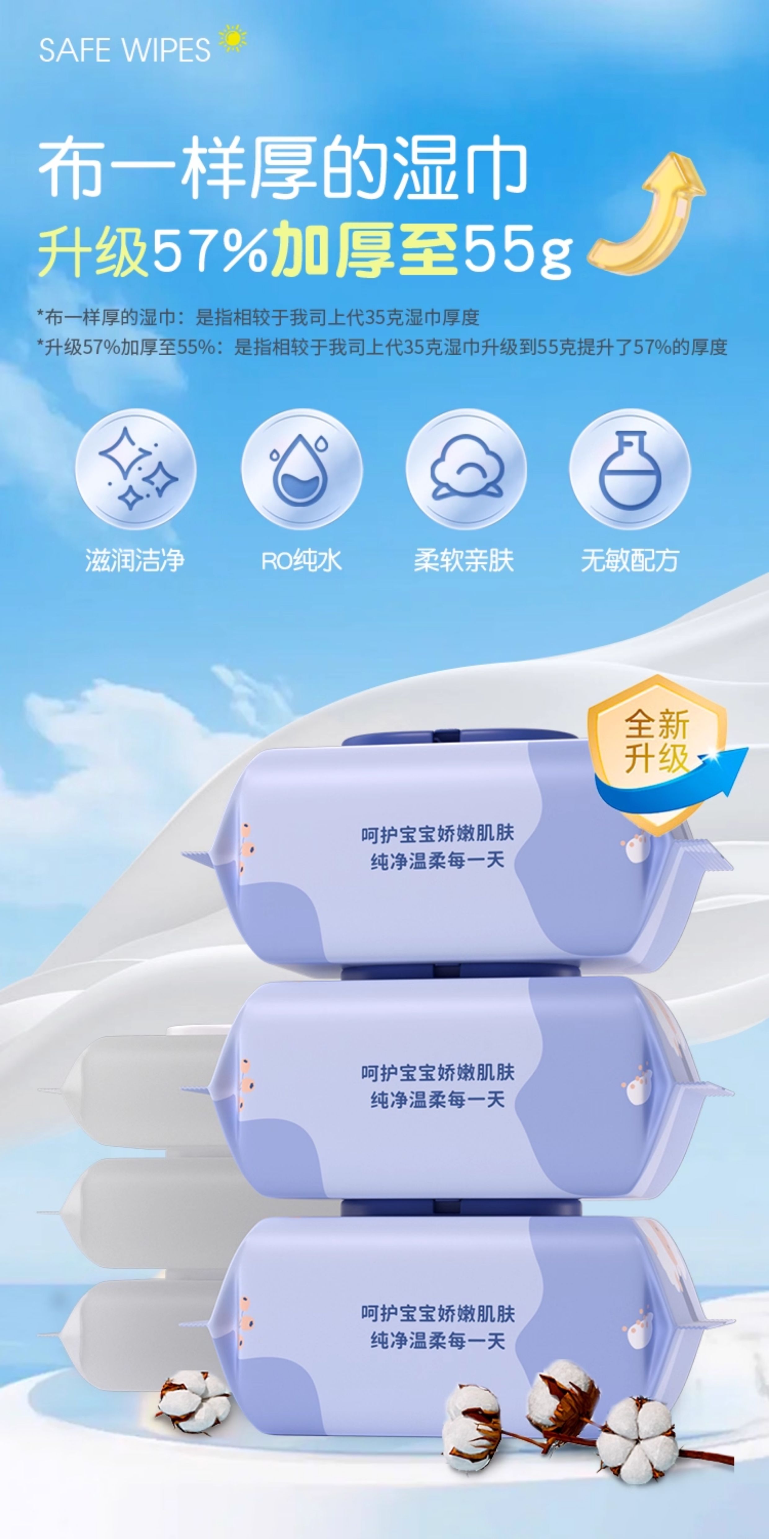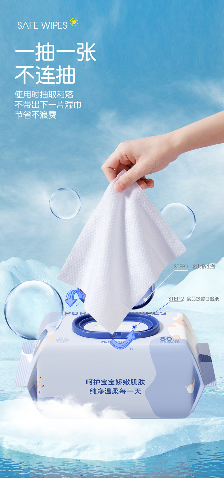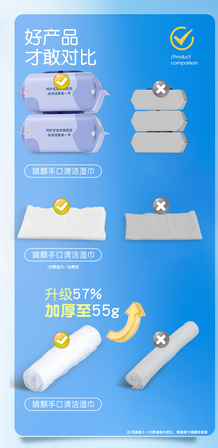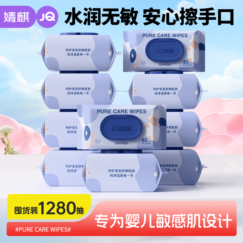 婧麒婴儿湿巾纸新生手口屁专用儿童加厚家用实惠装大包宝宝湿纸巾