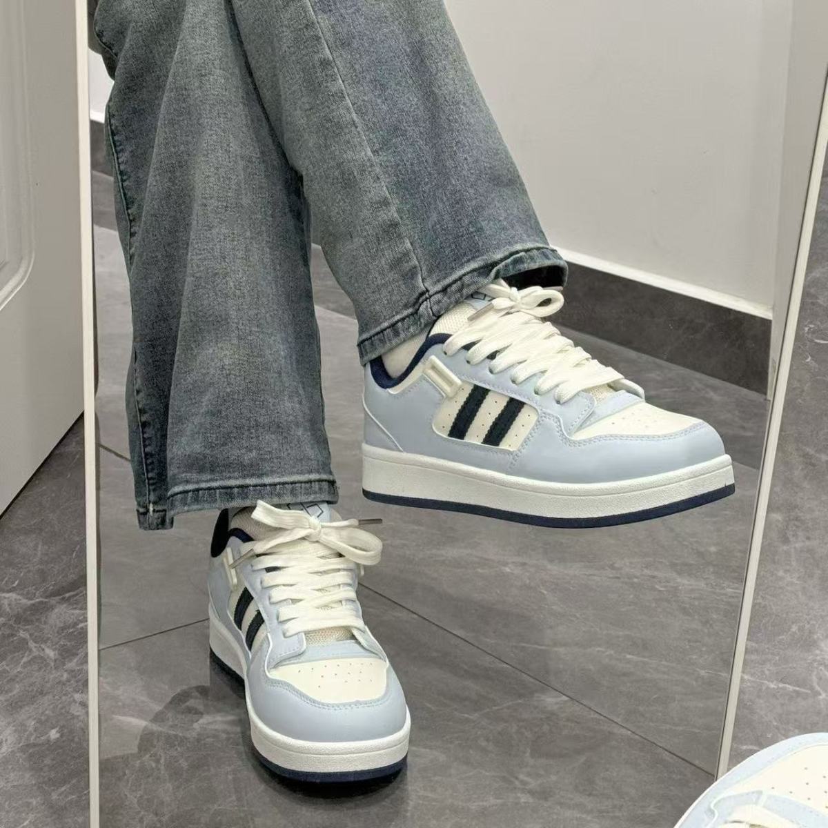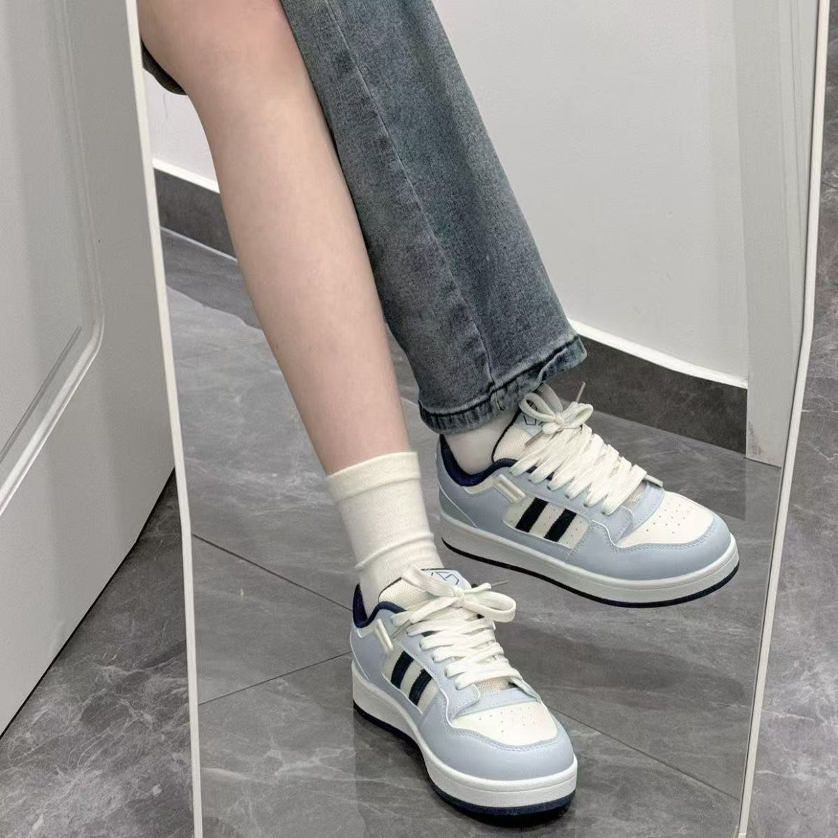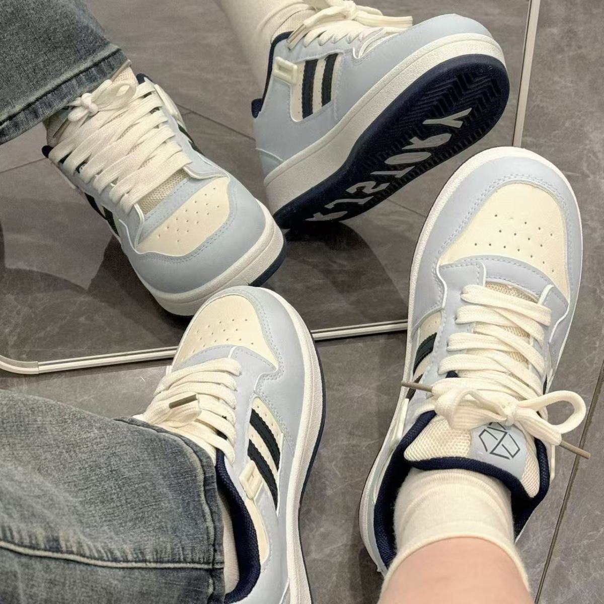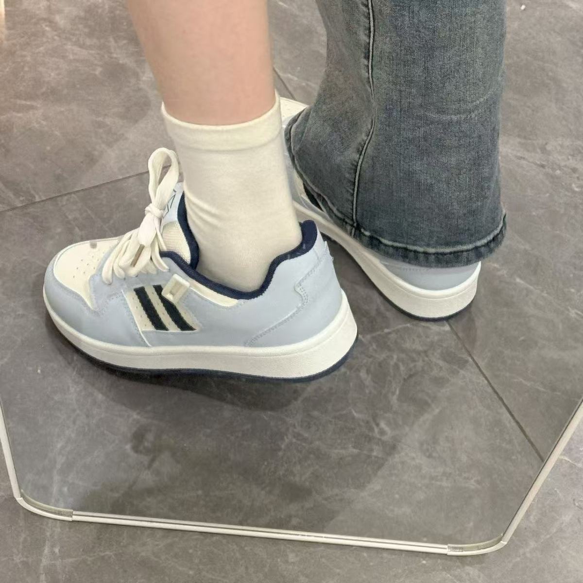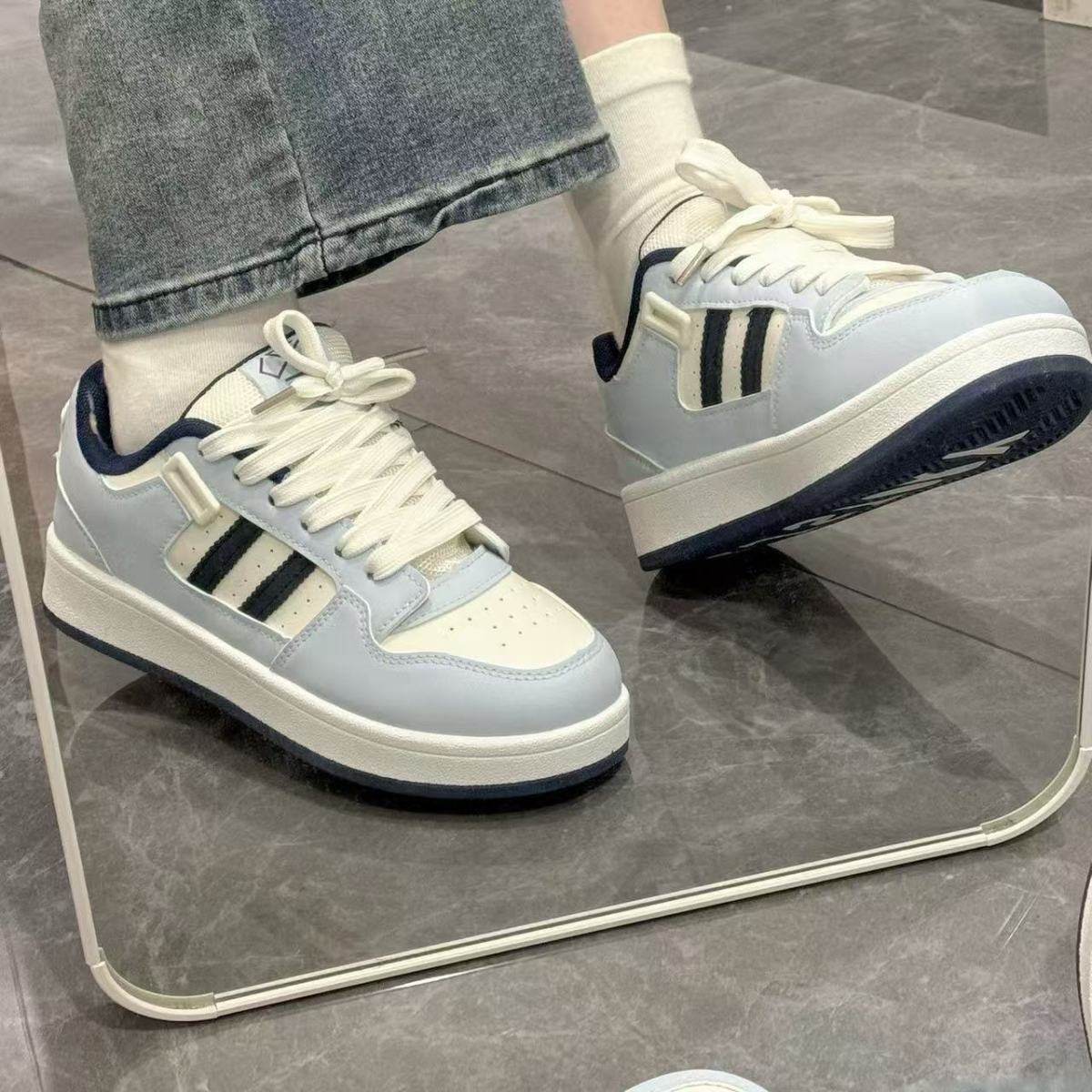 新款蓝白色厚底两条杠滑板鞋女chic潮流百搭滑板鞋休闲运动混的鞋