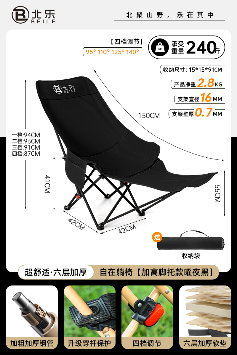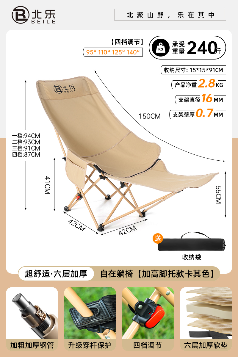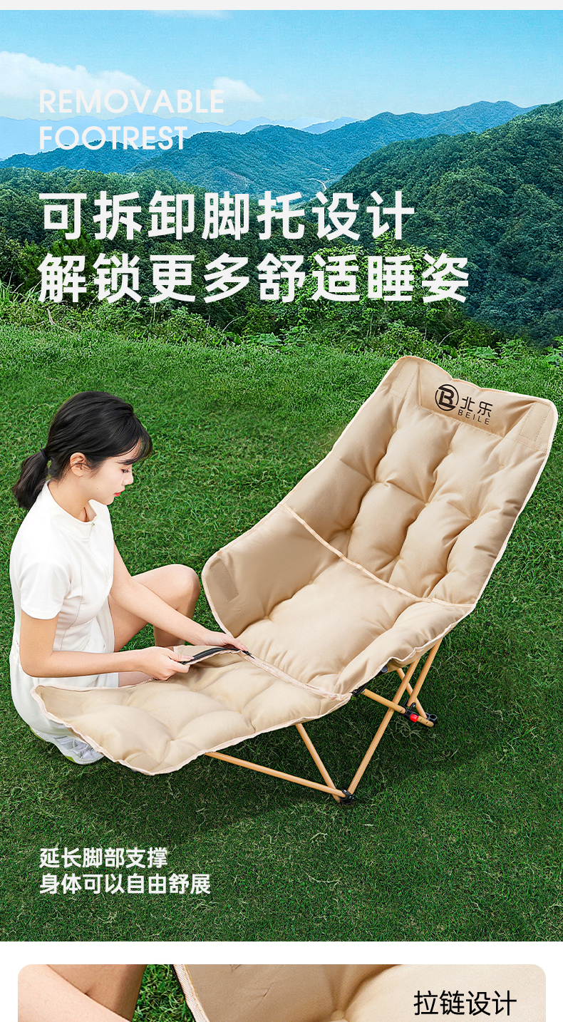 户外折叠椅躺椅新款坐躺睡三用午睡可坐可躺办公午休折叠床月亮椅