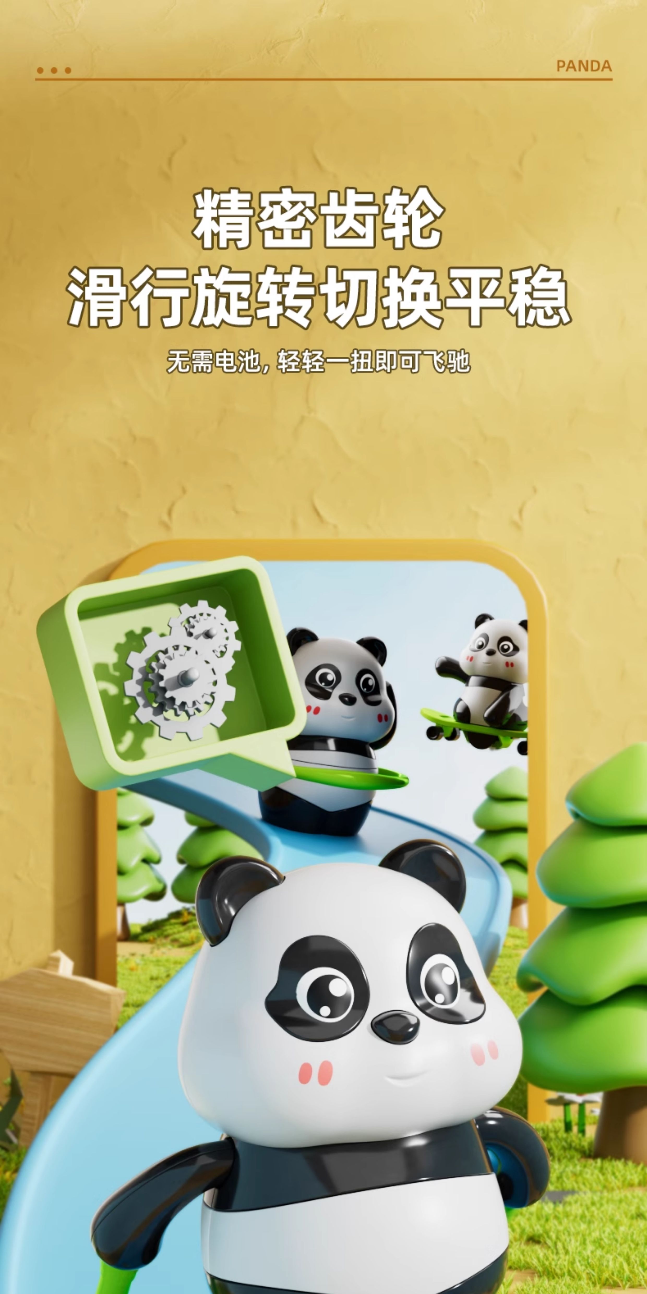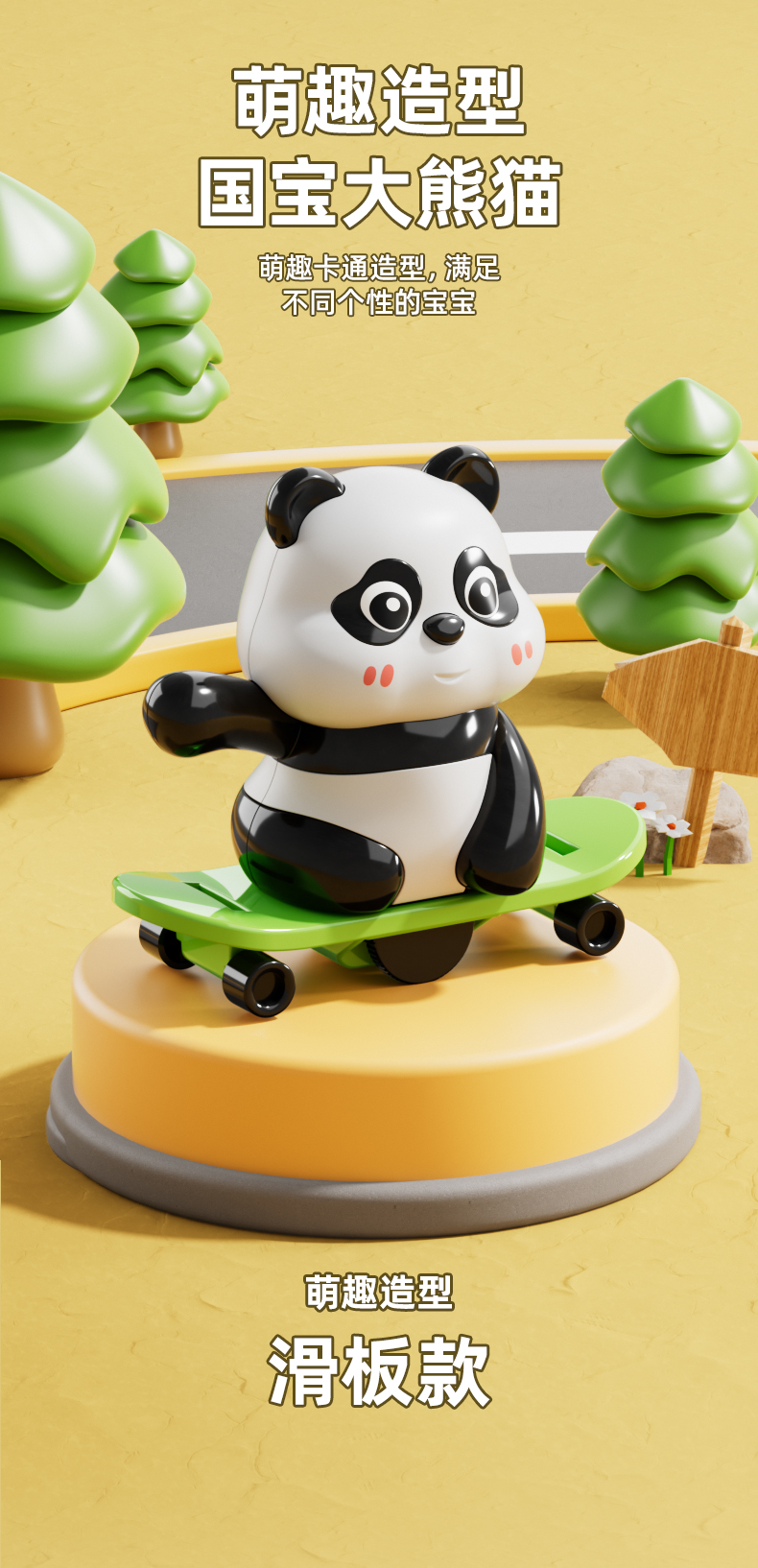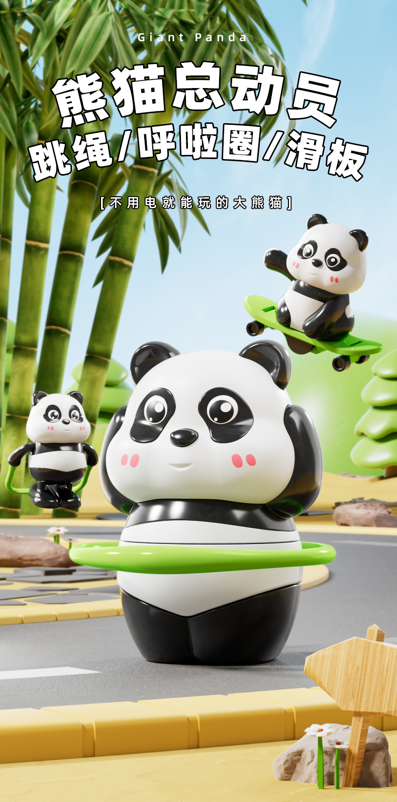 熊猫运动会系列上链发条玩具滑板呼啦圈跳绳宝宝学爬抬头训练礼物