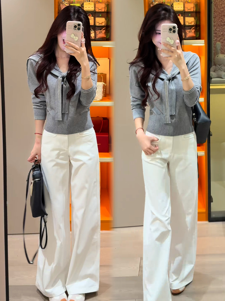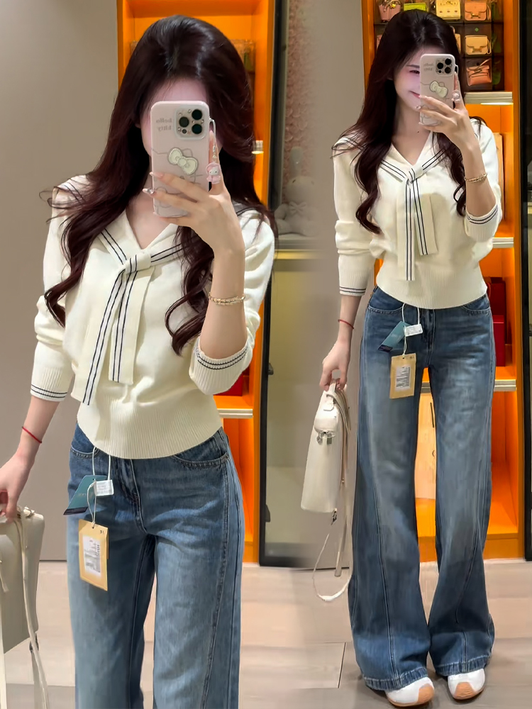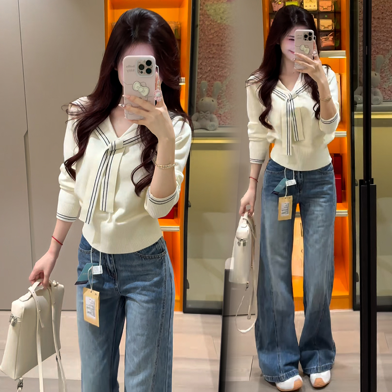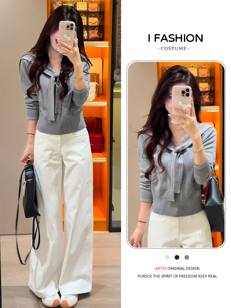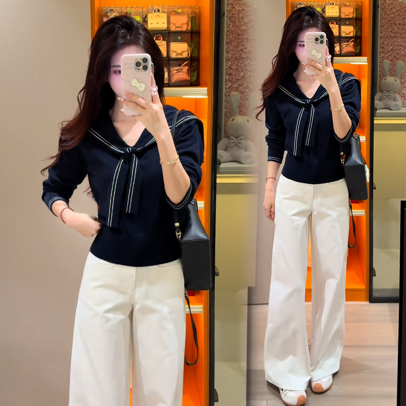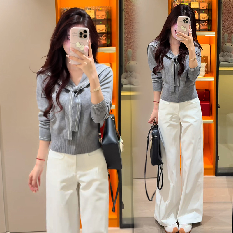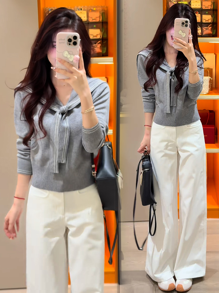 休闲显瘦设计感绑带上衣女装2025秋季新款韩系减龄气质长袖针织衫
