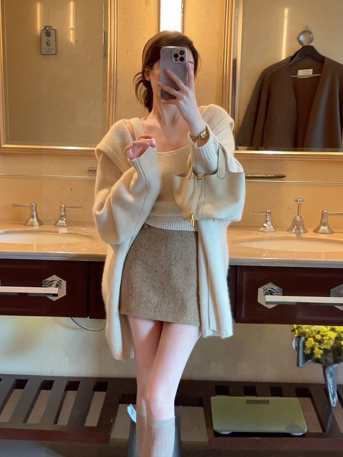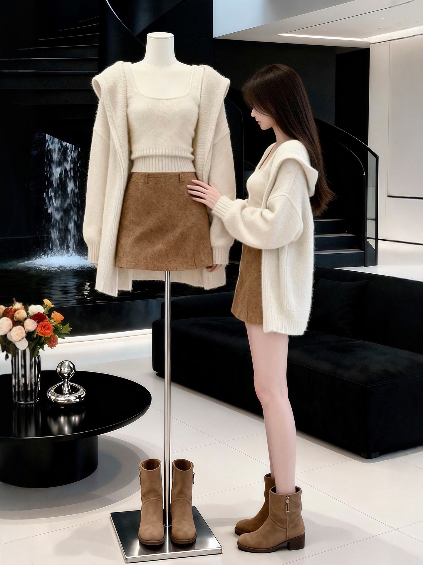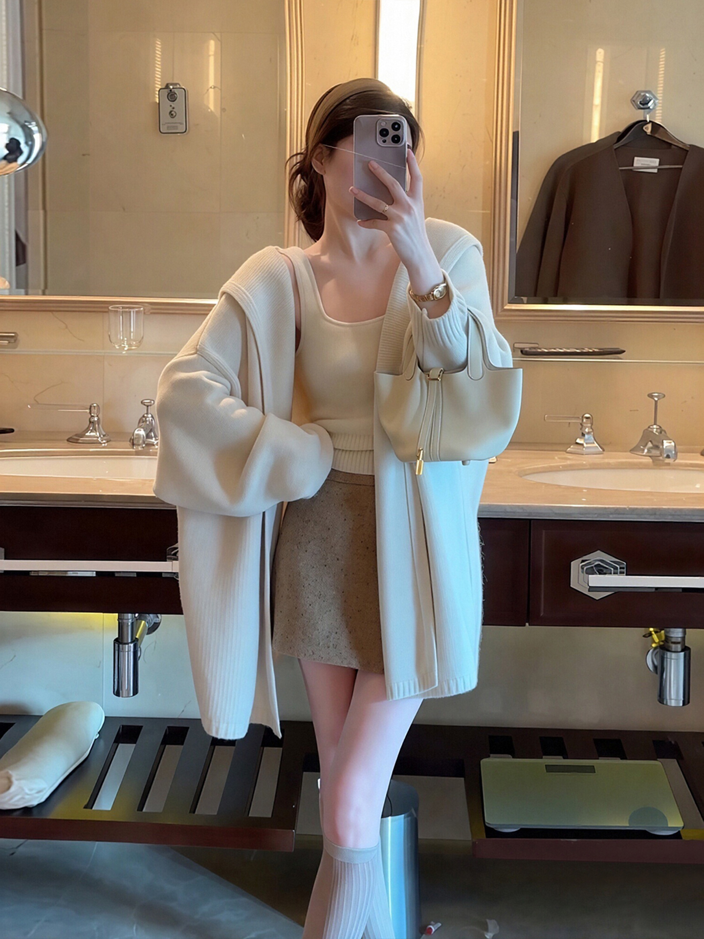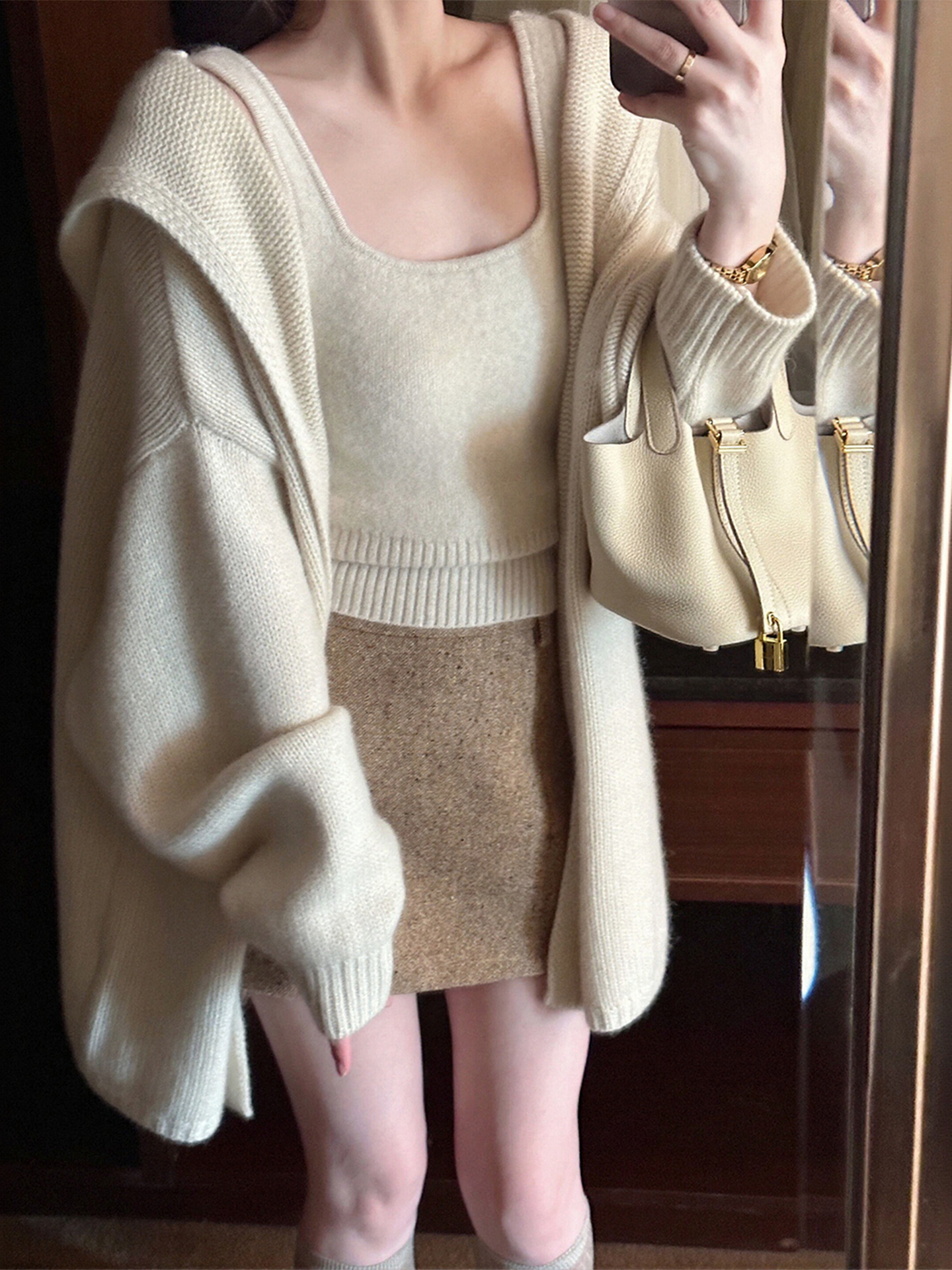 秋冬搭配一整套大码胖mm针织开衫外套短裙慵懒温柔休闲三件套装女