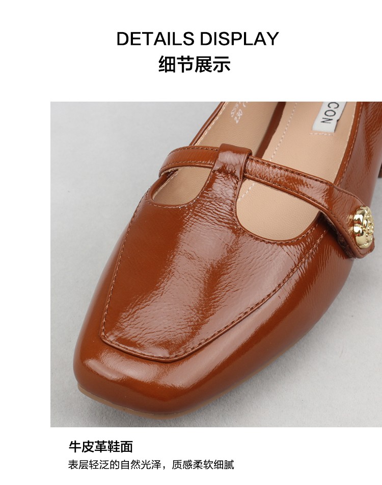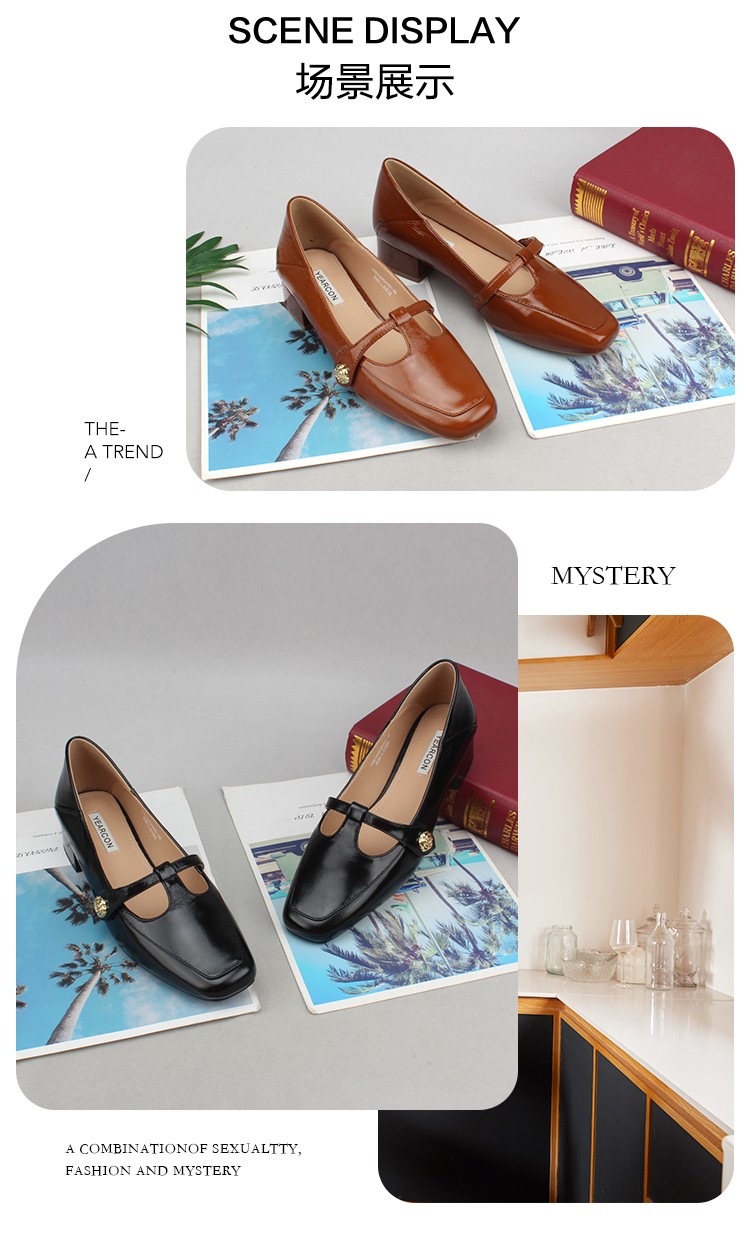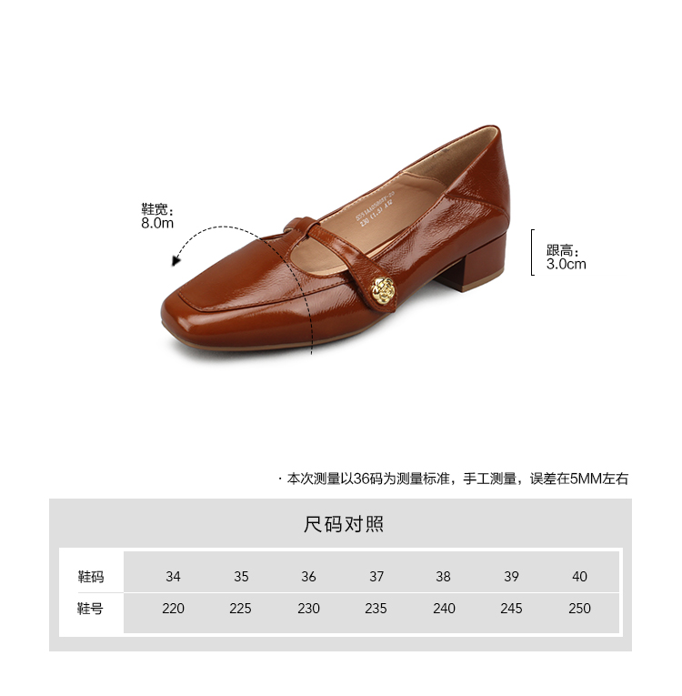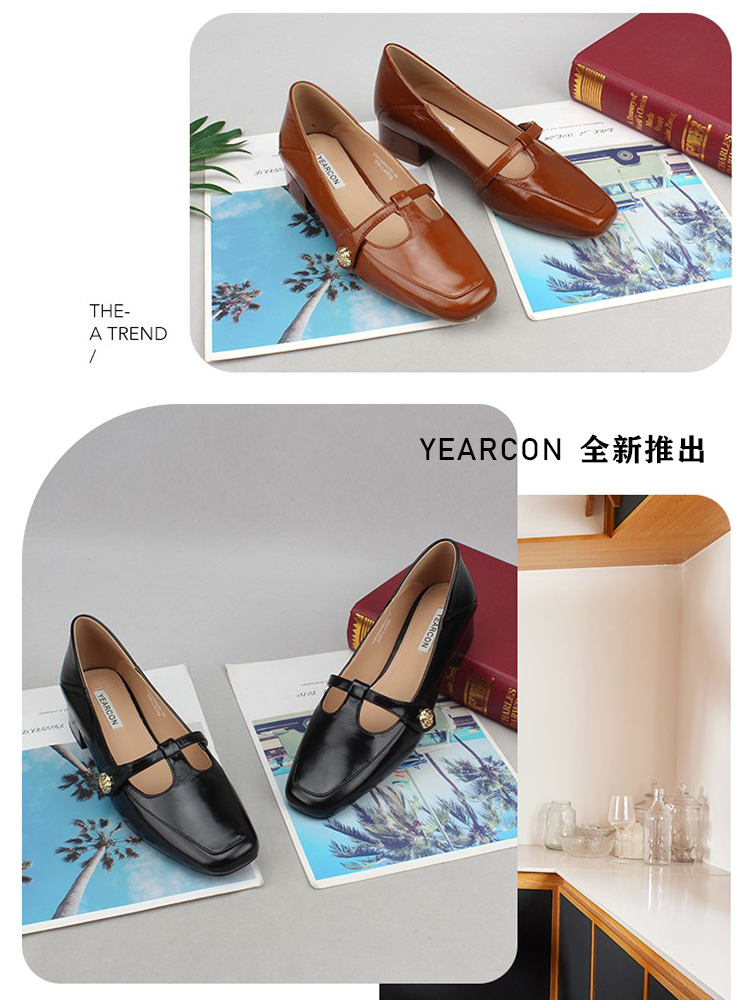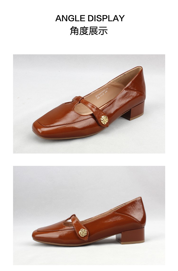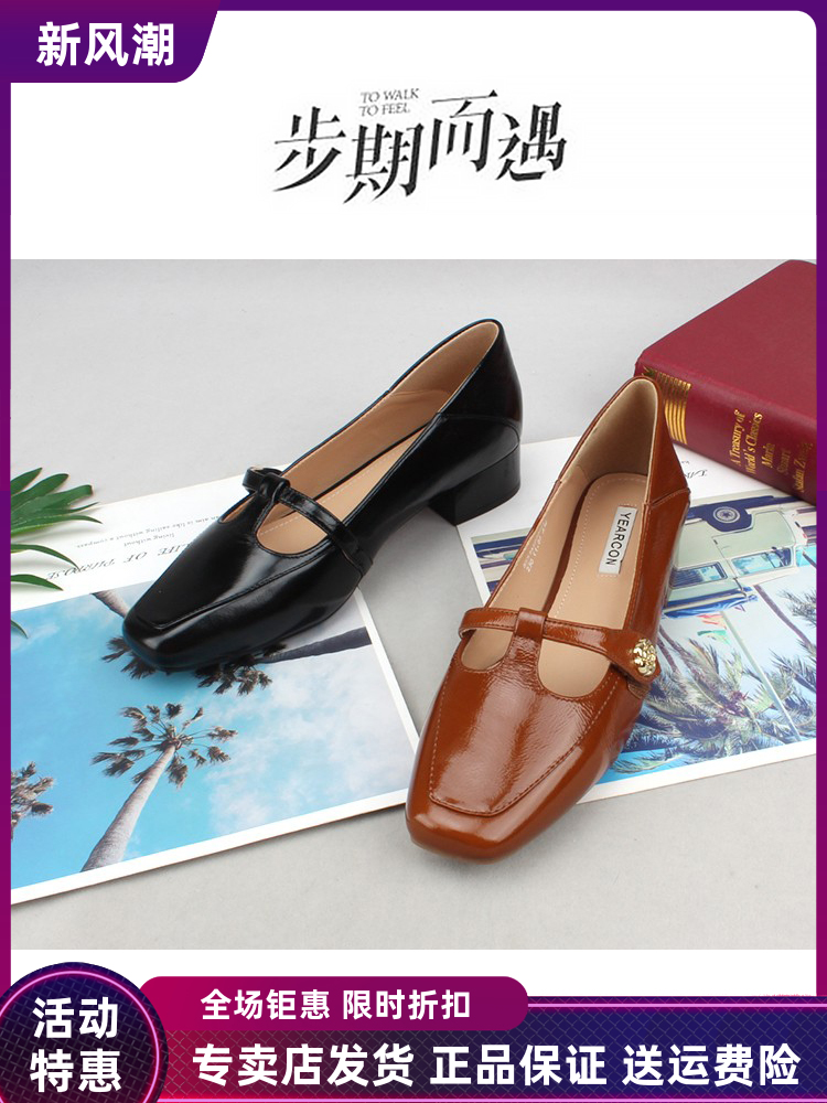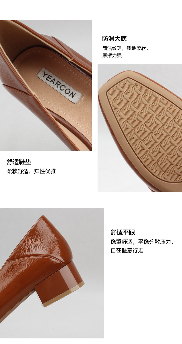 意尔康2024秋季新款女鞋时尚复古真皮粗跟浅口单皮鞋S551AA05865Y